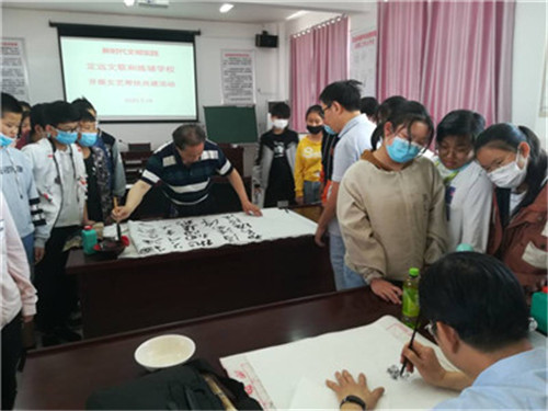 活动开始由李文清副主席给全体参加活动的师生们进行《书法史》……汉字演变讲座,随后两位专家向全体师生献上字画。本次共建活动的开展极大的提高了练铺学校师生学习书画的兴趣,为中国字画在练铺学校继续传承奠定了坚实的基础。(高付兵)
