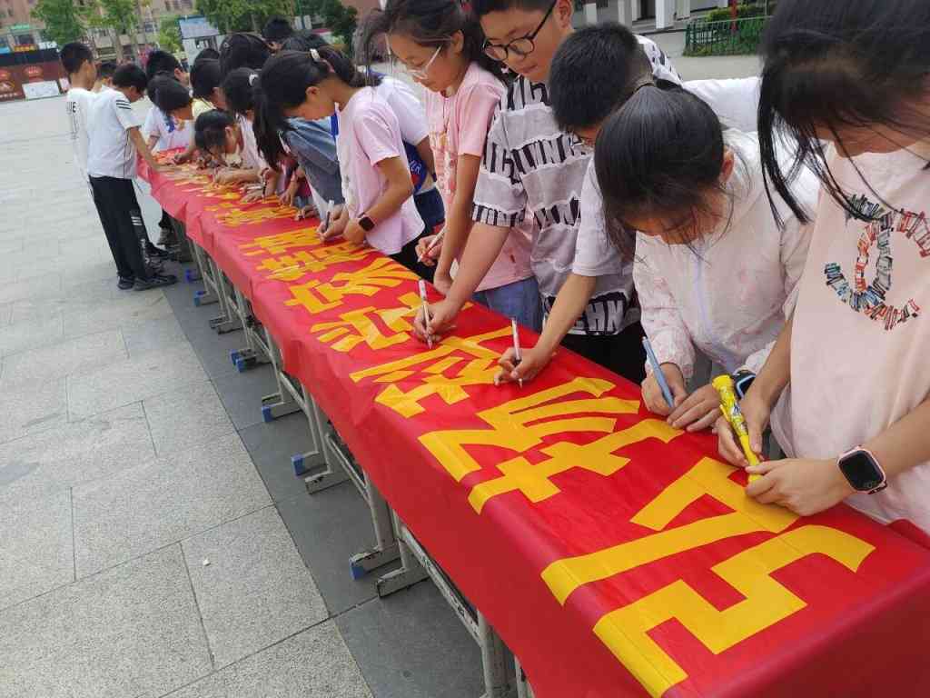 ~ 一、签字仪式。该校举行了以科技创新为主题升旗仪式。学生代表发起活动倡议,号召大家在横幅上郑重签下自己的名字,表达自己对科技的热爱和对未来的期许。
