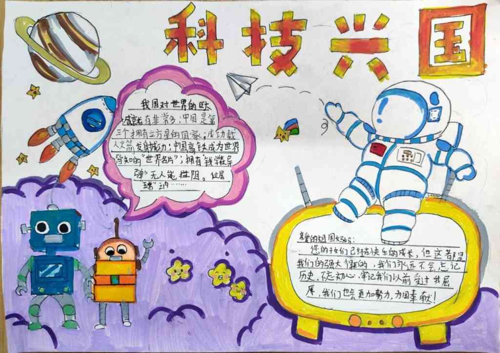 ~ 四、手抄报制作。最后的手抄报制作环节同样精彩纷呈。学生们围绕科技主题,搜集资料、整理信息,将各种科技知识、科技成就以及科技人物等内容融入到手抄报中。