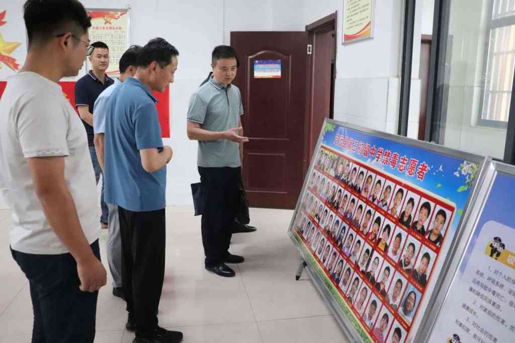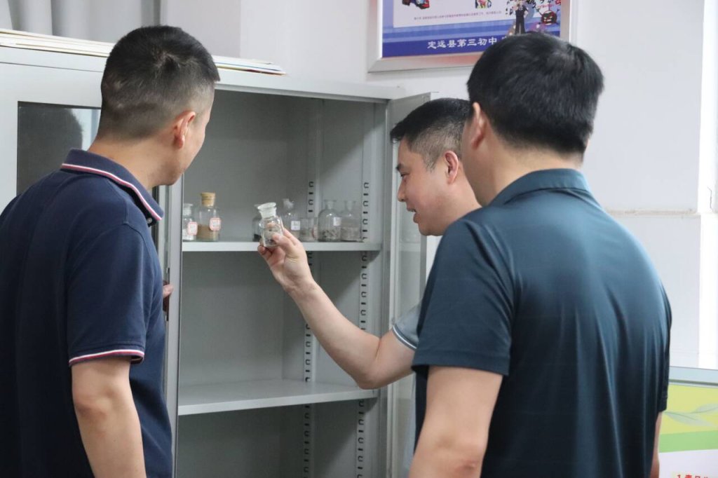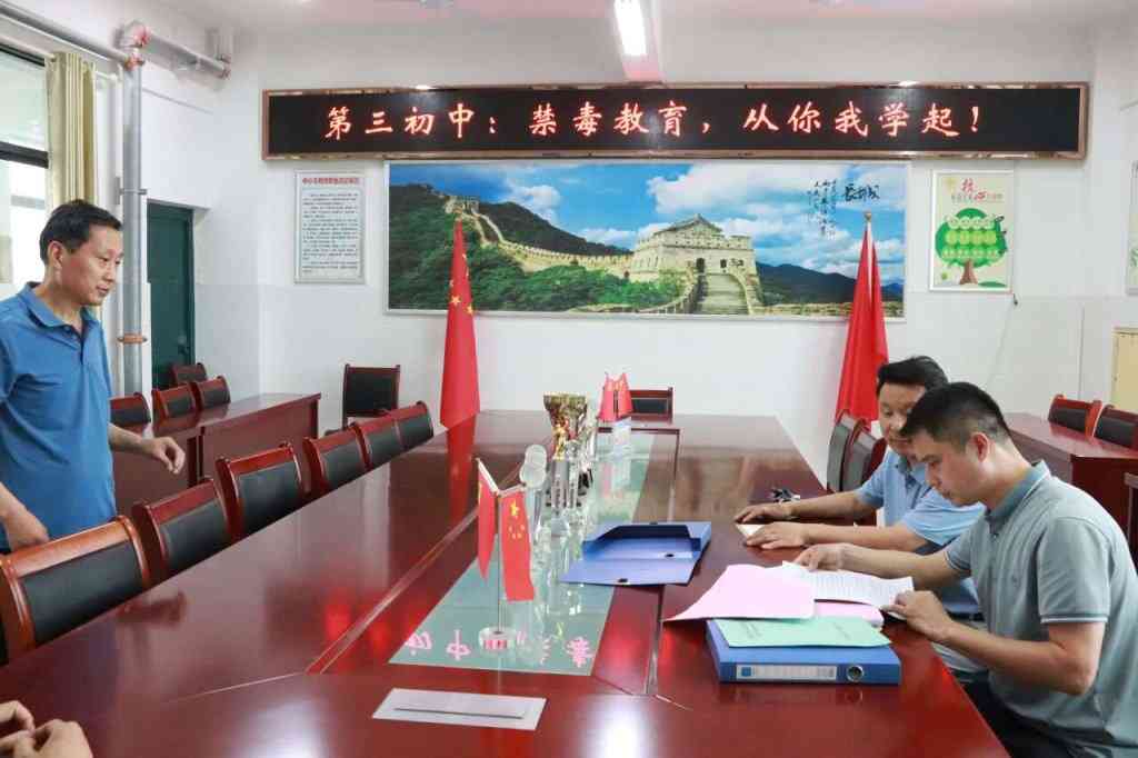 ~ 6月4日下午,滁州市禁毒办副主任张镇镇、滁州市教育体育局安全科王宝殿、定远县公安局禁毒中队中队长陶磊一行在定远县教育体育局工作人员的陪同下,对定远县第三初级中学开展“市级毒品预防教育示范学校”考评验收及禁毒督导检查工作。该校分管副校长宋德金等陪同检查。
