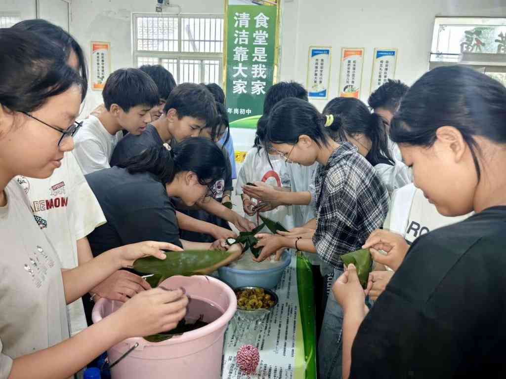 端午佳节即将来临,为了让师生们感受节日氛围,弘扬中华传统文化,增强文化自信,6月5日,定远县年家岗初中工会牵头,校团委、总务处、食堂工作人员、全体女教师及部分学生参加了以“‘粽’情端午‘粽’享安康”为主题的迎端午包粽子活动。