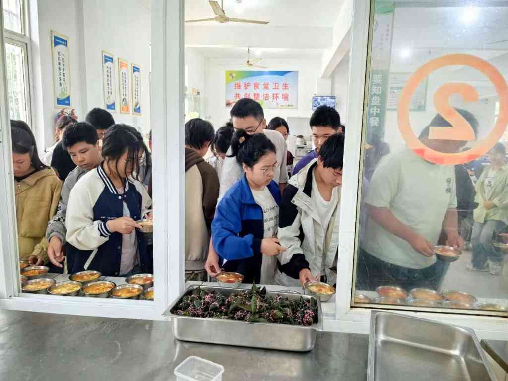 活动中,师生在食堂工作人员的指导下,纷纷拿起粽叶,兴奋又认真地学习起了如何包粽子。折粽叶、填糯米、裹叶子、扎线一道道工序有条不紊,忙得不亦乐乎,大家你争我赶,不甘落后,不一会儿,一个个饱满漂亮的三角粽子、四角粽子就包好了。