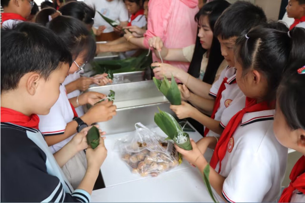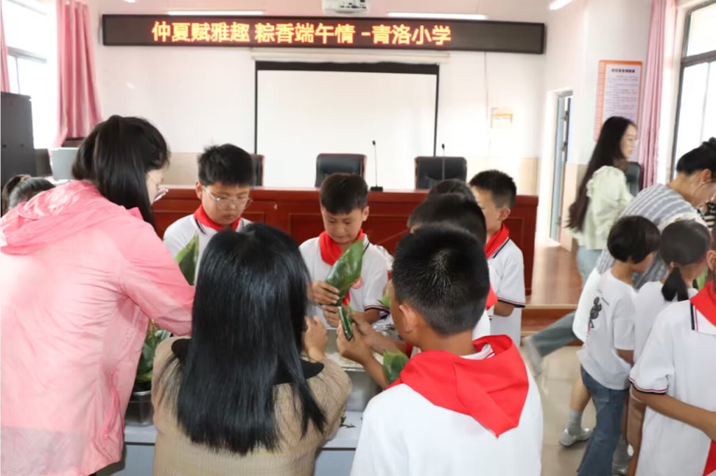 ~ 五月五,过端午,粽叶青,糯米香;挂菖蒲,带香包……一年一度的中国传统节日—端午节即将到来,为了让孩子体验中国传统节日特有的韵味,了解端午节的风俗民情, 6月6日,定远县青洛小学小学开展以“仲夏赋雅趣 粽香端午情”为主题的端午节留守儿童包粽子活动。