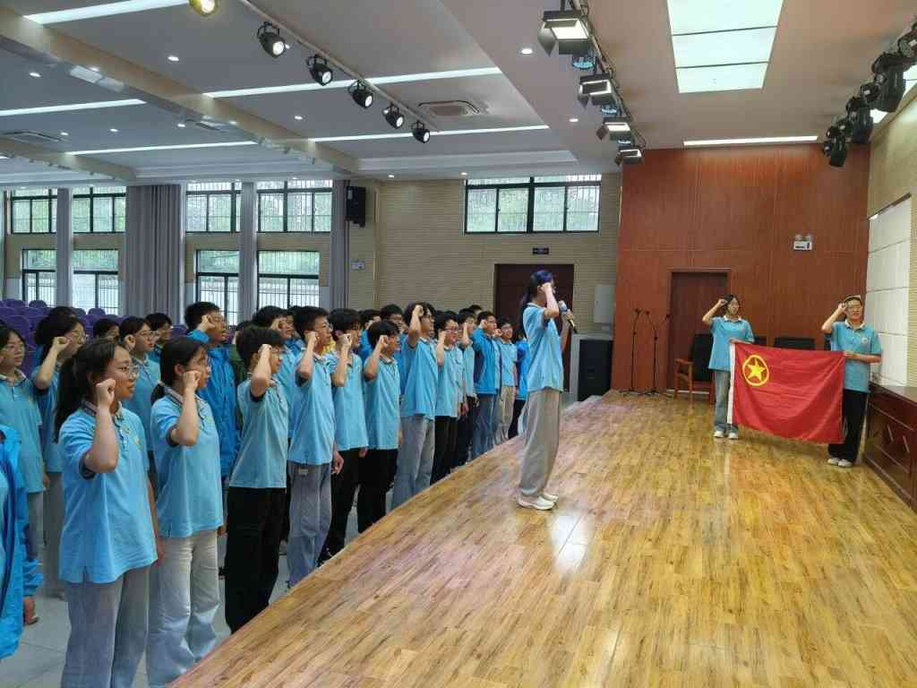~ 活动中,校团委委员刘传桂发表致辞,向新团员表示祝贺,殷切希望团员青年要心怀报国之志,锐意进取,以身作则,发挥团员青年先锋模范作用。校团委书记向团员青年介绍了团徽的组成及象征意义,强调每一位团员从佩戴上团徽的一刻起,就要认清自己肩负的责任与使命,以实际行动表明自己无愧于共青团员的光荣称号。全体团员齐唱《光荣啊,中国共青团》团歌,由老团员为新团员佩戴团徽,并一起面向鲜艳的团旗进行了庄严宣誓,铮铮誓言,振奋人心。新团员代表唐雨岑在发言中表示,要把誓言化作学习的毅力和恒心,树立崇高信念,奋发进取。团委书记在总结讲话中,鼓励团员青年勇担责任使命,坚定理想信念,练就过硬本领,涵养高尚品德,为强国建设贡献青春力量。团员青年们深受鼓舞,表示一定要牢记初心使命,勇挑重担,砥砺前行,用奋斗书写青春华章,为实现伟大复兴中国梦贡献青春力量。