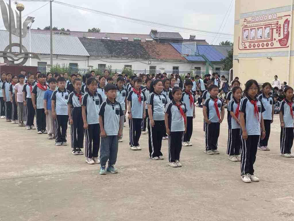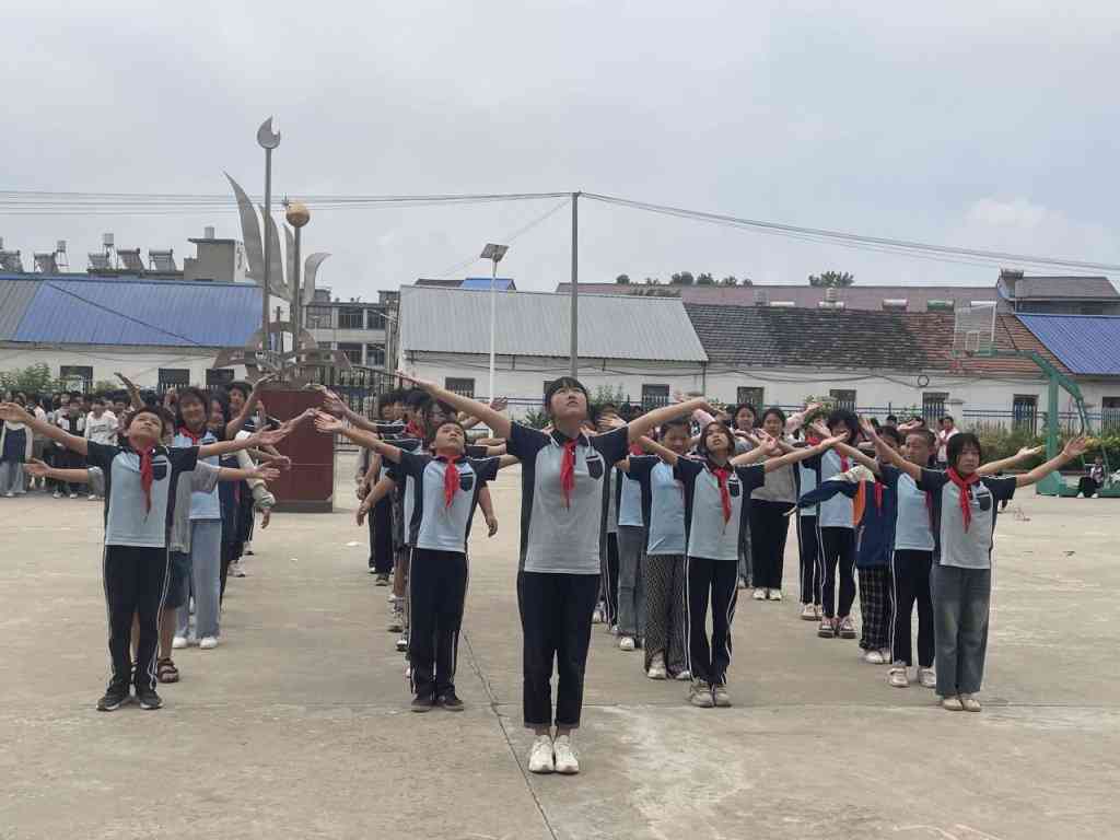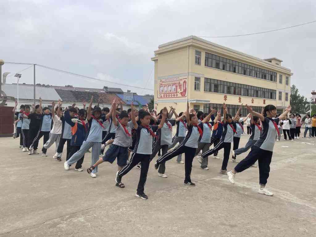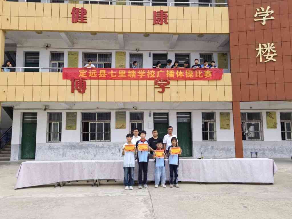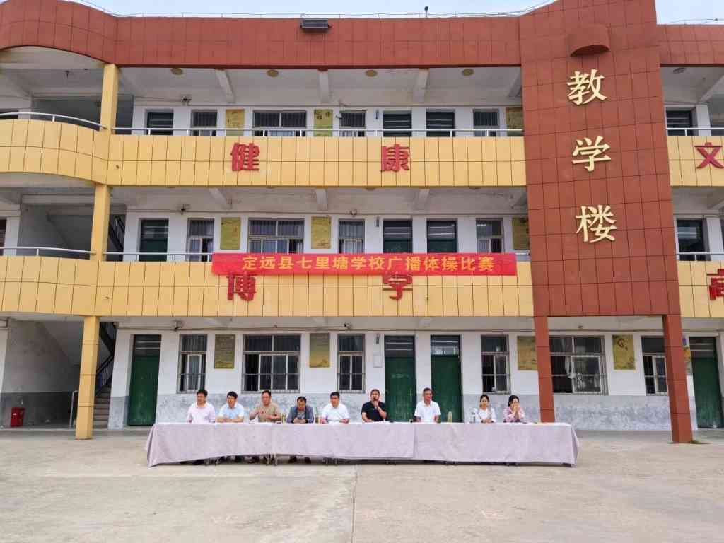 ~ “报告,六(2)班应到35人,实到35人,报告完毕。”,六(2)班广播体操领操员精神抖擞、声音洪亮地向领导汇报着。6月6日上午,定远县七里塘学校教学楼前广场正在举行夏季广播体操比赛。