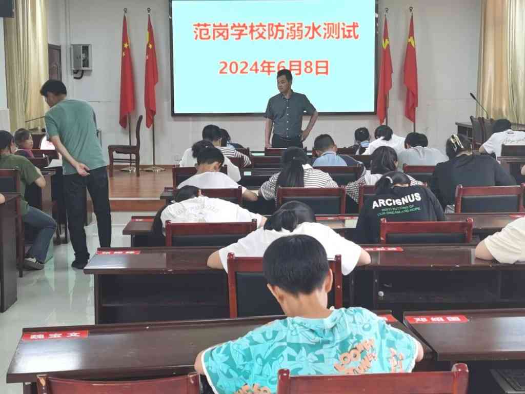 ~ 在此次测试之前,该校对防溺水知识进行了全方位的宣传:在班级张贴防溺水安全知识宣传画;老师每天在放学时强调防溺水等安全知识;各班通过班会宣传防溺水及自救知识;向家长发放《防溺水致家长一封信》;防溺水集体签名……这些都为此次竞赛做好了充分的准备。此次竞赛对象是三—九年级学生,每班随机抽4名学生,共52人,统一集中在会议室答题。测试内容包括填空题和简答题两大类。从答题的结果看,绝大部分学生都能很好地掌握这些知识。