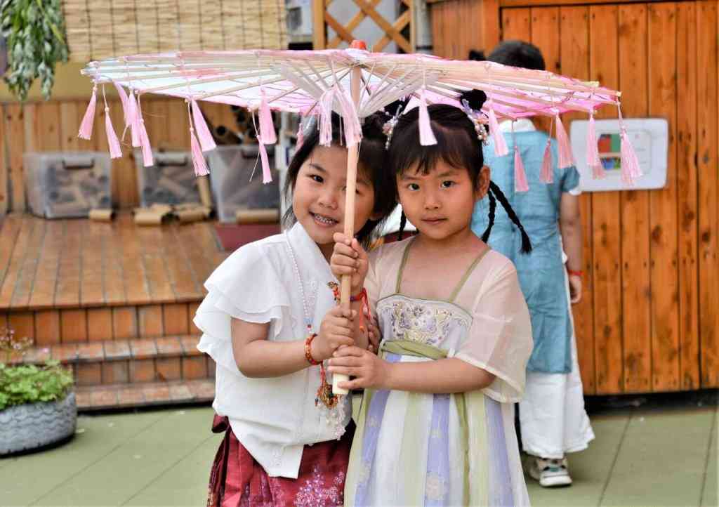 ~ 活动现场,孩子们或穿梭于汉服走秀的队伍中,感受传统服饰的韵味;或三两组合,学习编织五彩手链,寄托美好愿望;又或是分组合作,体验赛龙舟的团队合作与竞技乐趣。