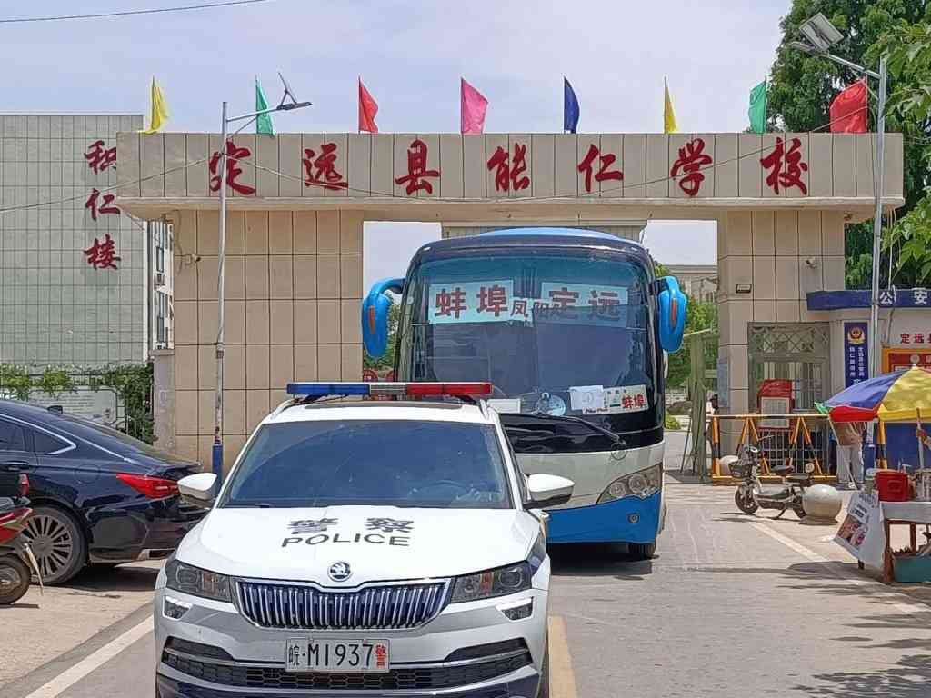 ~ 2024年6月13日中午,定远县能仁学校笃仁楼前广场四辆旅游大巴一字排开,等待着137名中考考生上车,即将驶往定远参加为期三天的中考。