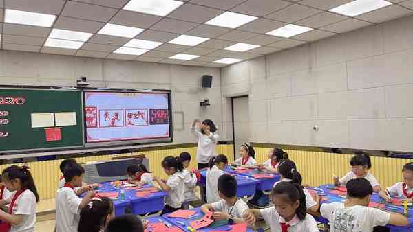 ~ 剪纸艺术作为中国传统文化的瑰宝,承载着丰富的历史和文化内涵,也是劳动人民的智慧象征。金玲老师在《剪纸故事》一课中巧妙地融入了新课标的理念,通过《八仙过海》故事动画片段导入不仅营造了一种沉浸式的学习氛围,还有效引导学生进入学习主题。课堂中引导学生观察剪纸作品发现特点、对比发现方法、回顾装饰纹样、对比南北方剪纸风格、分享故事发现题材、画人物动态线剪外形等让课程设计既结构化又目标明确。作品示范环节教师示范到劳动基地帮农户插秧的故事,将剪纸艺术与劳动学科实现了跨学科融合。