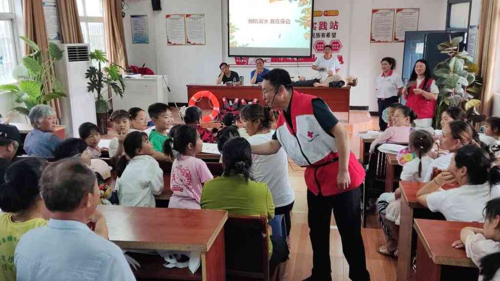 ~ 培训由定远县红十字会齐家龙老师主讲。他主要讲了水的危险性、如何防止溺水事故发生以及遭遇溺水时如何自救互救的知识。他从专业的角度重点讲解了自救互救的方法和注意事项。比如救生衣、救生圈的穿着要领,应急使用棍棒和绳索救生的注意事项。他还通过人体模型,现场操作演示溺水幼儿和成人心肺复苏术的动作要领。