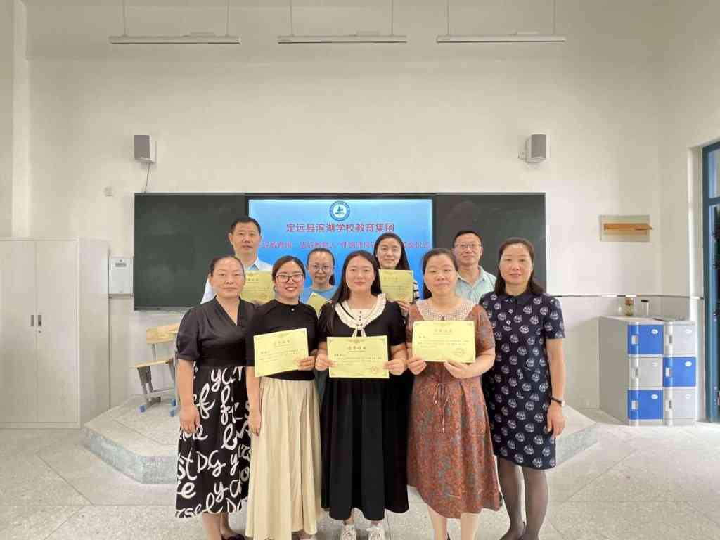 2024 年 6 月 27 日,定远县滨湖学校教育集团隆重举行了,以“干好教育事,当好教育人”为主题的师德师风征文比赛颁奖仪式,为在本次征文比赛中表现出色的教师们颁发荣誉证书。此次活动旨在弘扬高尚师德,倡导良好师风,激励广大教师爱岗敬业、关爱学生、严谨笃学、自尊自律。