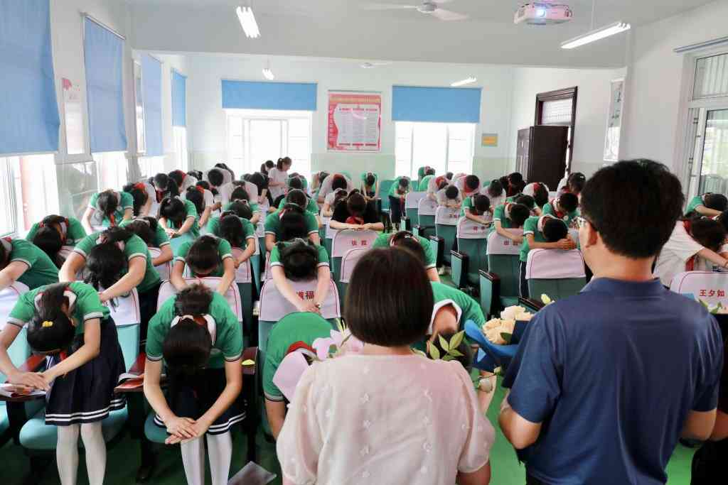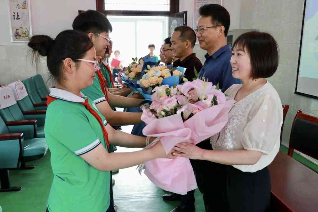 ~ 典礼上,孩子们为六年来一直陪伴和教育自己的老师献上鲜花,学生们用中华民族优秀传统礼仪,表达对老师的敬意与感恩。一拜:谢师恩,知山知水春风化雨 ; 再拜:念师情,树木树人润物无声; 三拜:与师别,渐行渐远永念师恩。深深的三鞠躬让老师们动容。