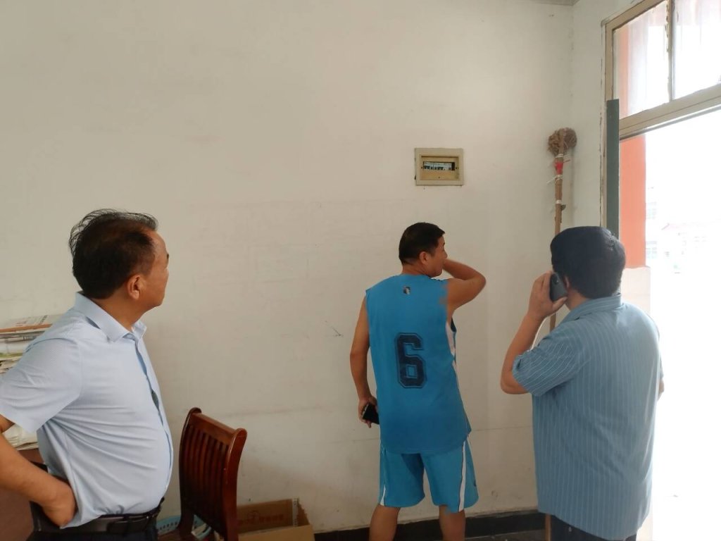 ~ 暑假来临,为切实做好假期期间教室、办公室的安全卫生工作,消除隐患,确保暑假期间学校安全稳定,6月30日上午10:00,,定远县池河中学由校长室、总务处、团委等部门组成的卫生检查组在副校长黄祎带领下,对学校所有教室、办公室的卫生、水电等进行细致全面的检查。