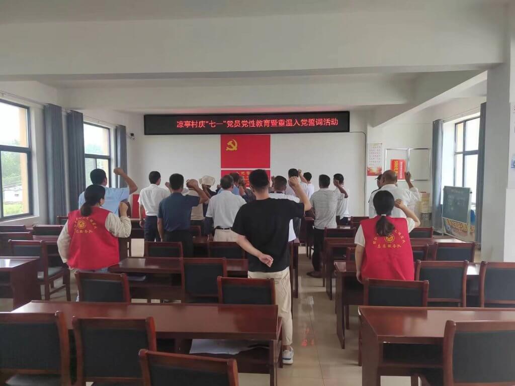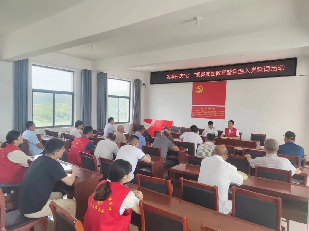 ~ 2024年7月1日,定远县能仁乡凉亭村党支部开展了“庆七一党员党性教育暨重温入党誓词”活动。在村的党员干部和凉亭村驻村工作队参加了此次活动。