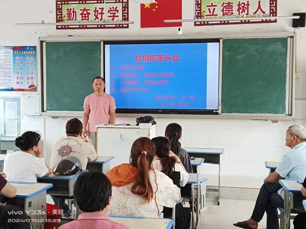 ~ 7月2日,定远县第三初中召开七、八年级学生家长会,落实期末和暑假事宜,坚持家校合作,帮助学生度过一个平安而有意义的暑假。