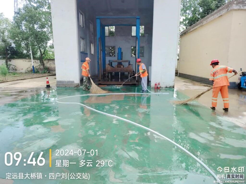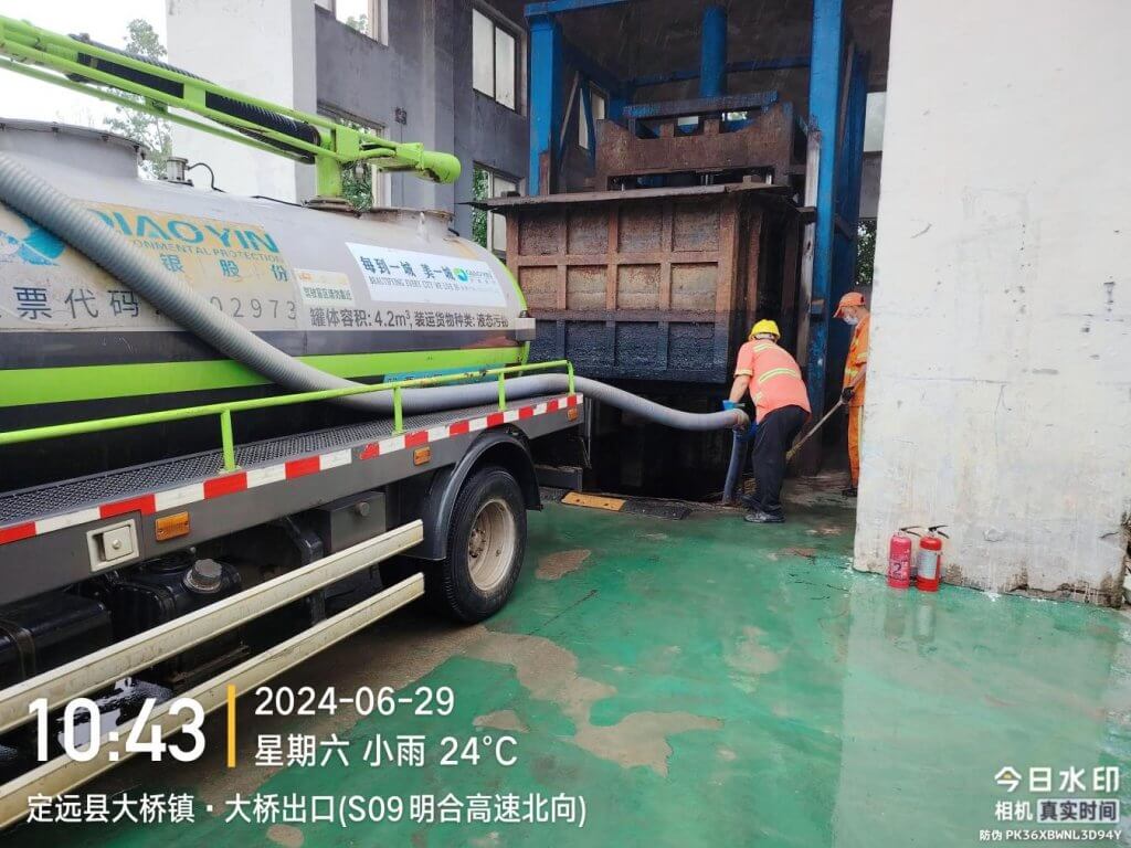 ~ 中转站及周边范围环境展开清洗整治,分别对地面、压缩设备、操作房的油污进行仔细清洗,确保设施周围无污水、无积存垃圾、无异味,实现垃圾中转站整洁有序。利用抽水车对压缩槽内污水收集,进行无害化处理,避免污水对生态环境影响。