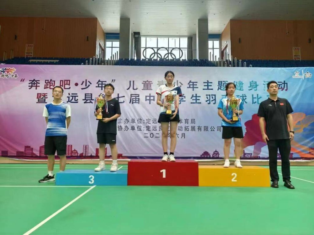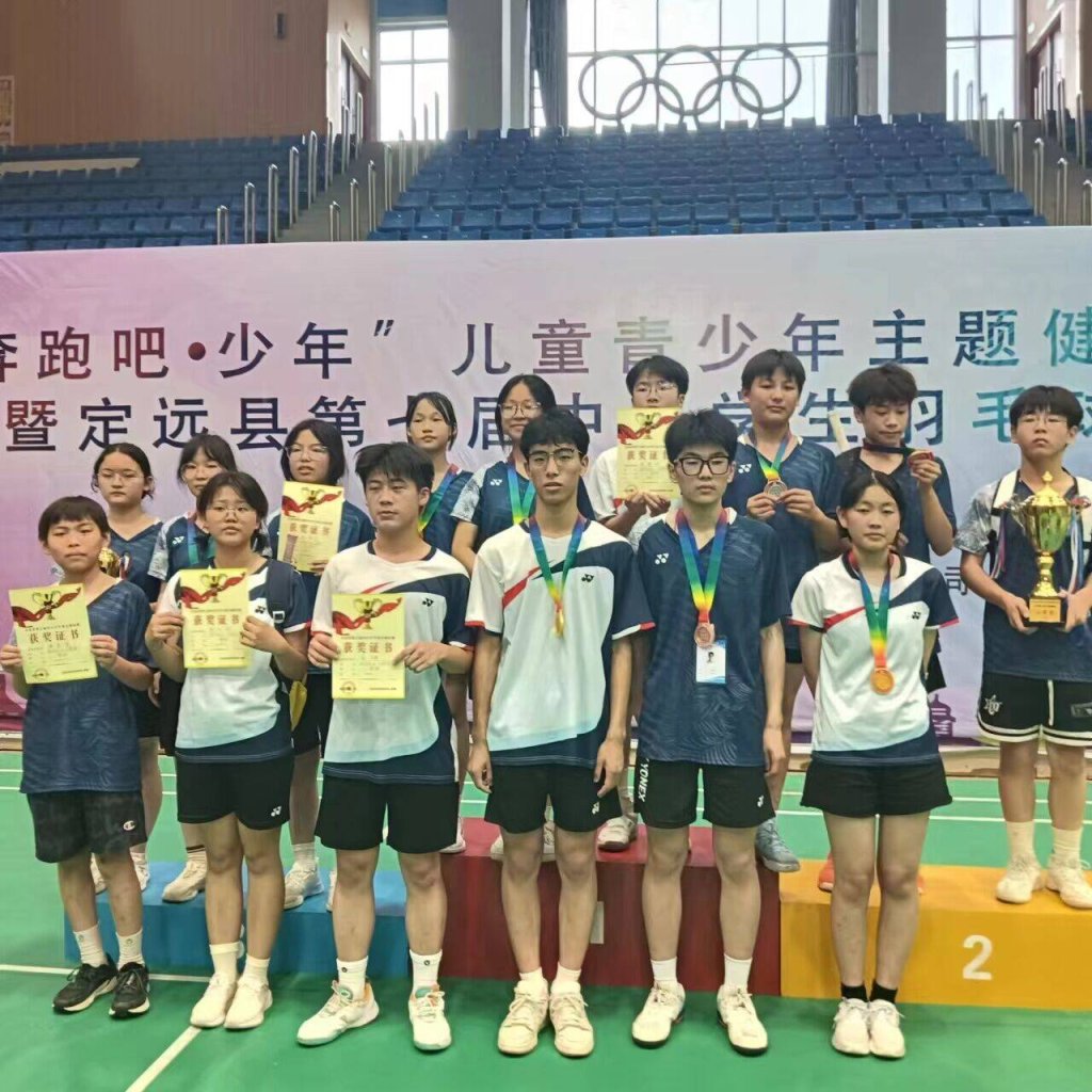 ~ 6月30日至7月1日, “奔跑吧•少年”儿童青少年主题健身活动暨2024年定远县第七届中小生羽毛球比赛在县体育中心综合馆成功举行,本次赛事由县教育体育局主办。池河中学参赛选手表现出色再获佳绩,勇夺初中组男(女)单打一等奖、男(女)双打一等奖、女团一等奖,同时斩获多枚单项奖牌。