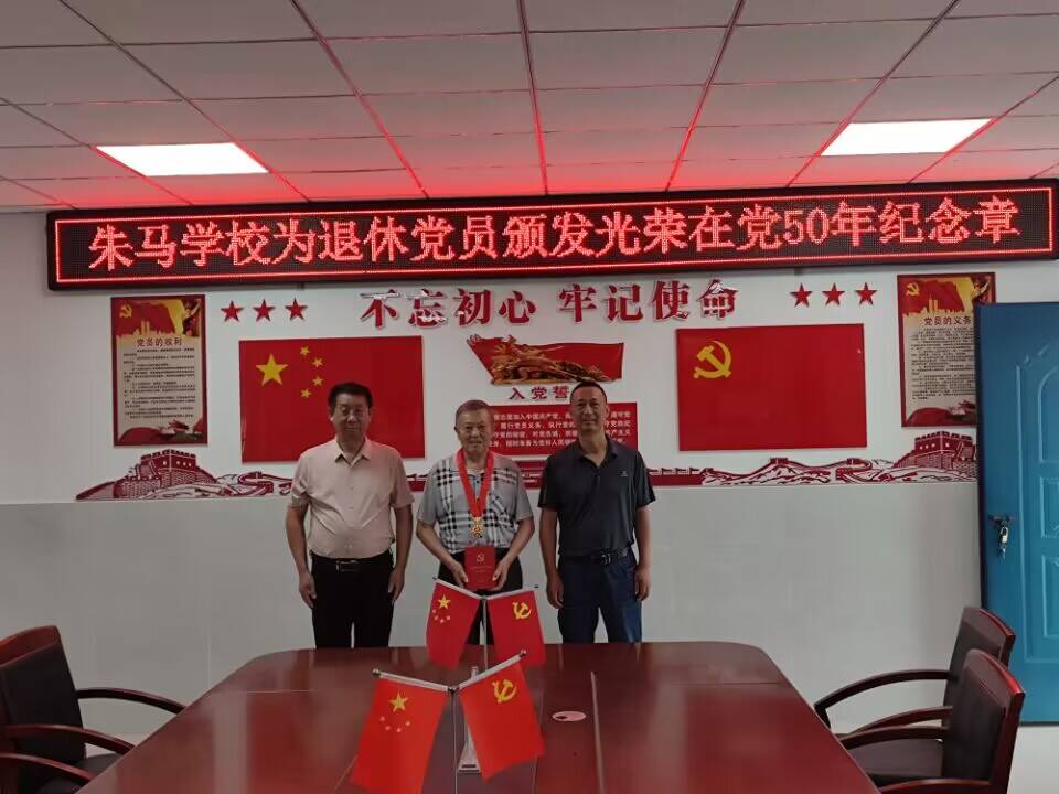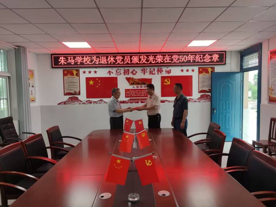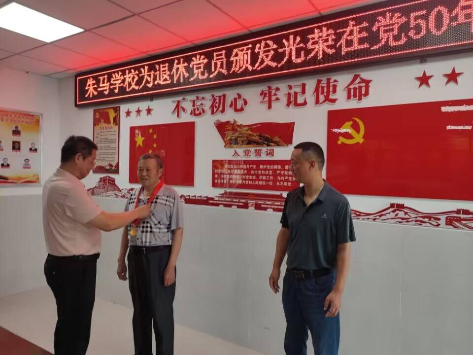 ~ 在中国共产党成立103周年之际,为进一步弘扬伟大建党精神,激励党员干部坚定理想信念,砥砺初心使命,激发教师工作热情,2024年7月10日,定远县朱马学校党支部为退休教师颁发光荣在党50年纪念章。