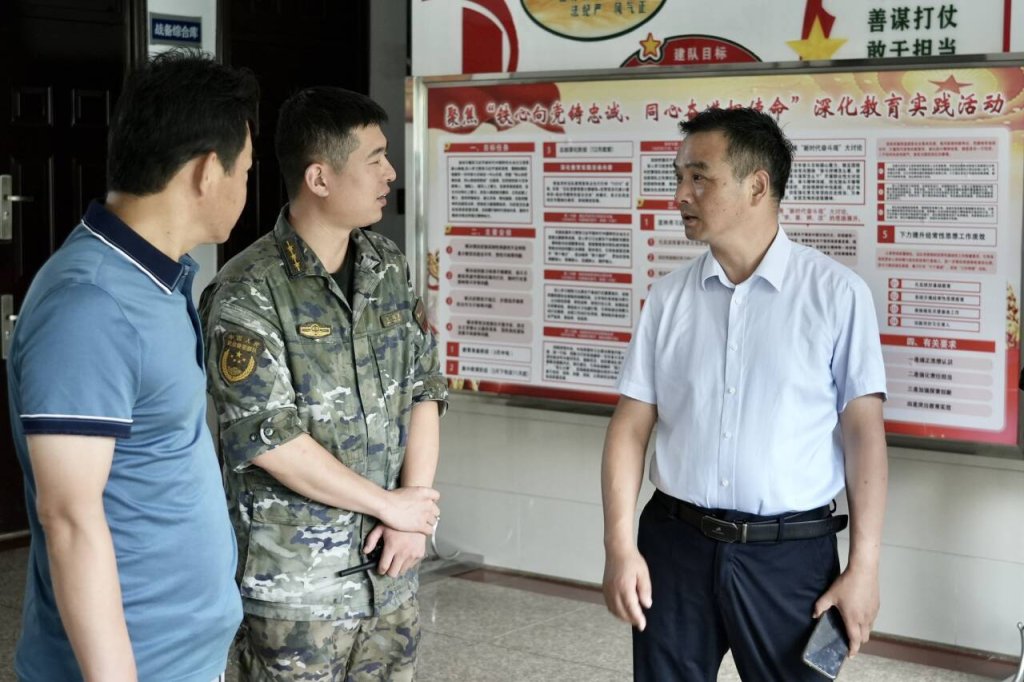 ~     7月27日上午, 在“八一”建军节即将来临之际,定远县桑涧小学党支部书记、校长张道胜以及兄弟学校,带着师生的深情厚谊,走进定远武警中队,向坚守在岗位上的武警官兵们致以崇高的敬意和节日的问候。