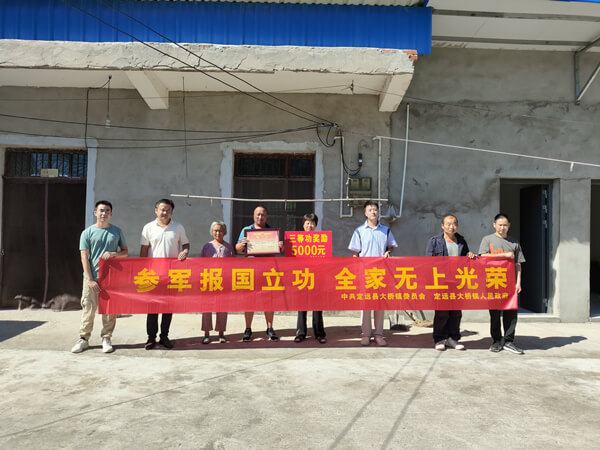 ~ 大桥镇切实提升军人及家庭的荣誉感,积极营造“参军报国立功、全家无上光荣”的浓厚拥军氛围。7月30日起,镇长邬正利携镇武装部、退役军人服务站、宣传办工作人员对辖区内18户立功受奖家庭开展送喜报慰问活动。