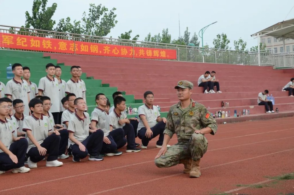 ~ 高中部德育副校长李昱霖对担任此次军训任务的教官表示热烈欢迎!对即将迎接军训挑战的同学们提出三点要求:一要充分认识军训的意义,增强军训的自觉性;二要以振奋的精神面貌,聚精会神搞好军事训练,接受军训的考验;三要把学习军人严明的纪律,过硬的作风,和自觉地遵守学校的一切规章制度结合起来,努力做一个遵纪守法的高中学生。