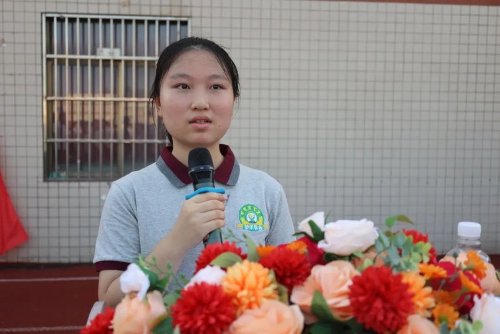 ~ 高一优秀新生李思琪同学代表全体参训学员发言。她表达了对高中生活的期待,同时鼓励同学们用坚韧不拔的意志、敢于争先的决心迎接新挑战,奋进新征程;听从教官指挥,服从管理安排,不畏艰难,迎难而上,圆满完成军训任务,成长为最好的自己!