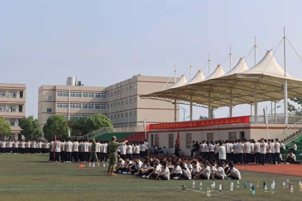 ~ 淬炼青春正当时,强国有我勇担当。为筑牢学生的爱国情怀,增强学生国防观念,培养学生吃苦耐劳、团结拼搏精神,滁州市定远英华中学高中部将开展为期14天的2024级高一新生军训。8月18日早晨,2024级新生军训动员大会在田径场举行。县人武部吴东伟部长、总教官吴兵兵及15名教官、英华中学高中部领导、2024级高一年级班主任和全体新生参加。活动由新高一年级主任张祥主持。