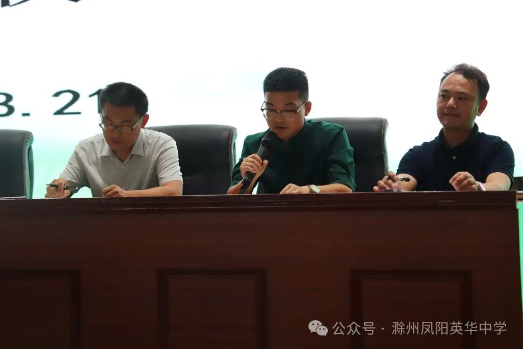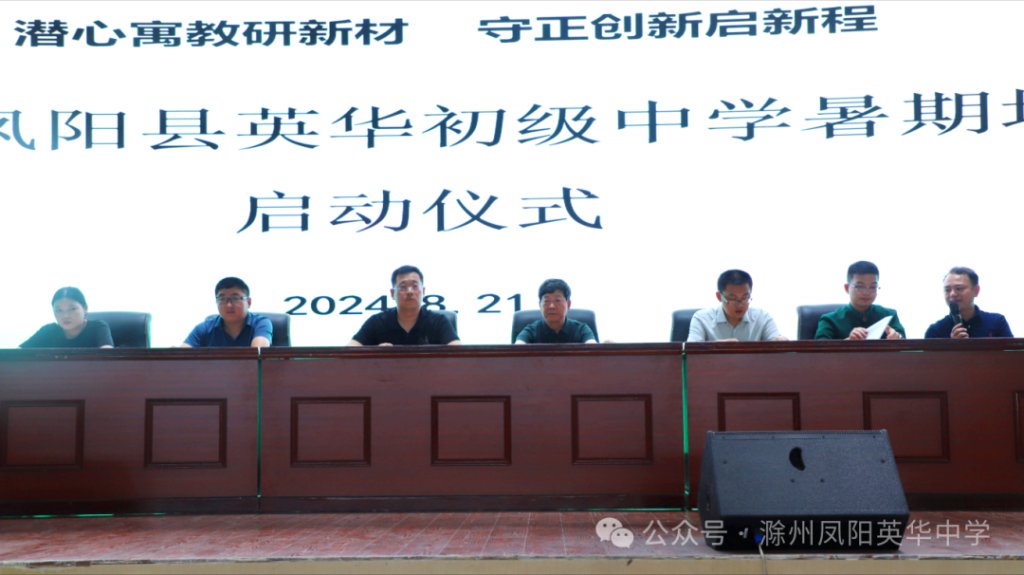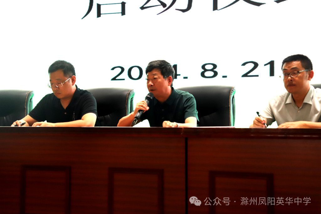 ~ 凤阳英华中学执行校长杜广卫,初中部校长王永,初中部德育主任兼九年级级部主任张培旭、初中部德育副主任周珊、初中部教学主任兼七年级级部主任戴其兵、八年级级部主任邓勇及初中部全体教师出席本次启动仪式。启动仪式由张培旭主任主持。