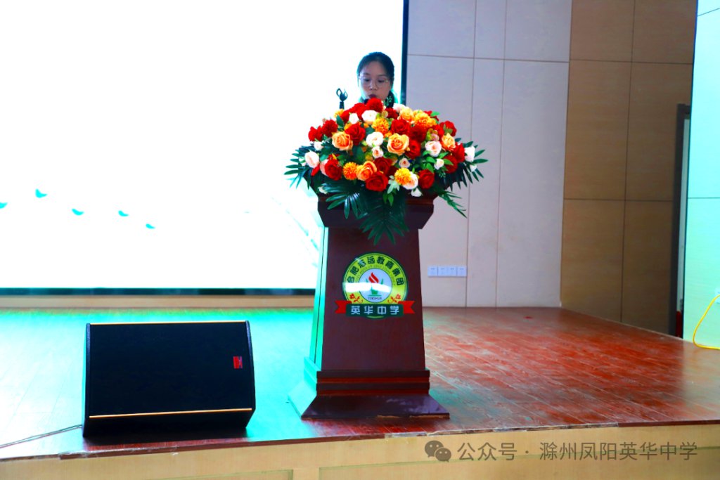 ~ 蒋梦月代表新教师发言。蒋老师分享了自己与英华的故事,她表示在未来的工作中一定会努力向各位老师学习,尽早成为一名合格的教师,与大家齐头并进,为学生的未来而奋斗。