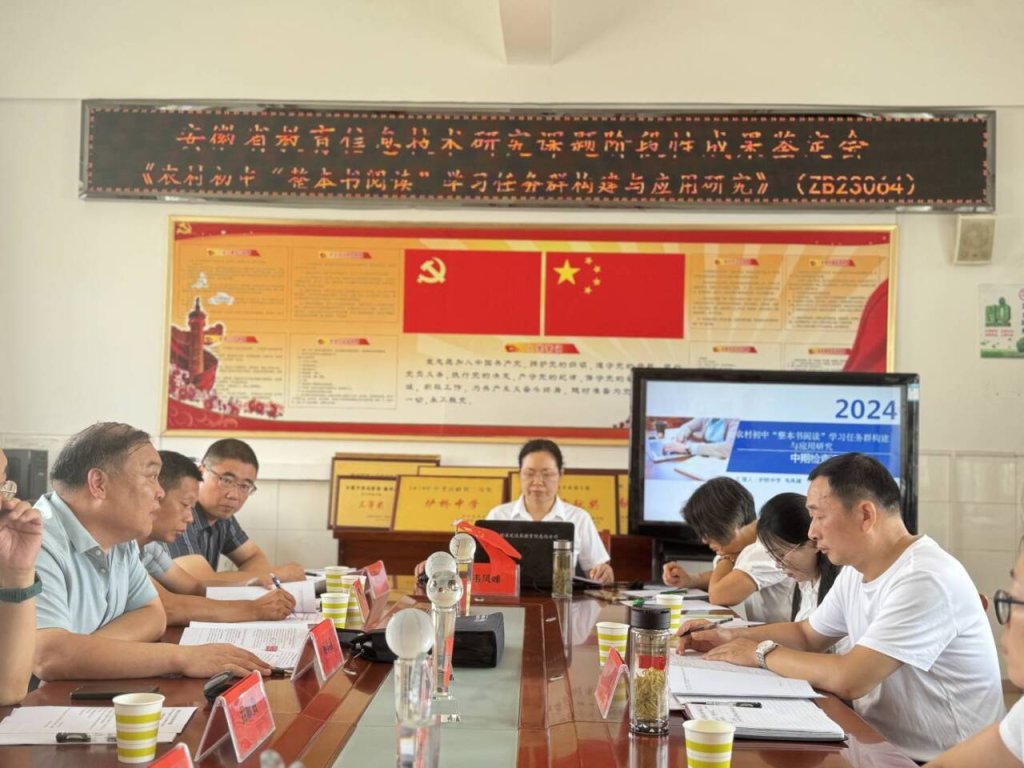 2024年8月23日上午9时,定远县炉桥中学党建办公室内气氛热烈,由该校承担的安徽省2023年教育装备研究课题《农村初中“整本书阅读”学习任务群构建与应用研究》(立项编号ZB23064)顺利通过中期检查。此次检查标志着该课题在探索与实践道路上又迈出了重要一步。