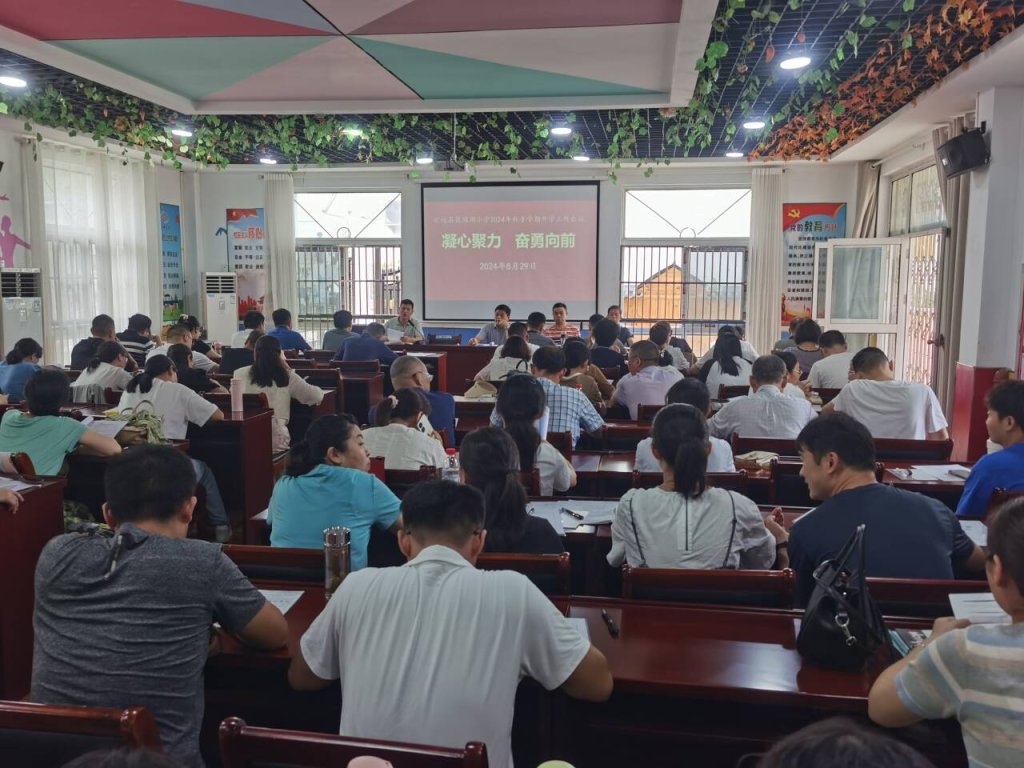 ~ 为进一步凝聚团队力量,确保新学期各项工作有序、平稳、高效开展,引领全校教职工以崭新的面貌、饱满的精神迎接新学期,8月29日上午,定远县花园湖小学召开了以“凝心聚力 奋勇向前”为主题的2024年秋季新学期开学大会,为新学期的教育教学工作蓄力赋能。本次会议由副书记许开松主持,全体教师参加会议。