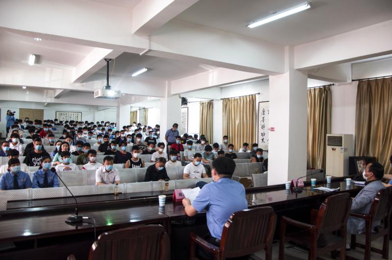~ 为进一步推进法制进校园活动,5月21日上午,定远化工学校邀请县人民检察院检察官走进校园,举办法制专题讲座。校党委委员、副校长王传文主持,政教处、安全办负责同志及来自高一的200多名同学聆听了讲座。