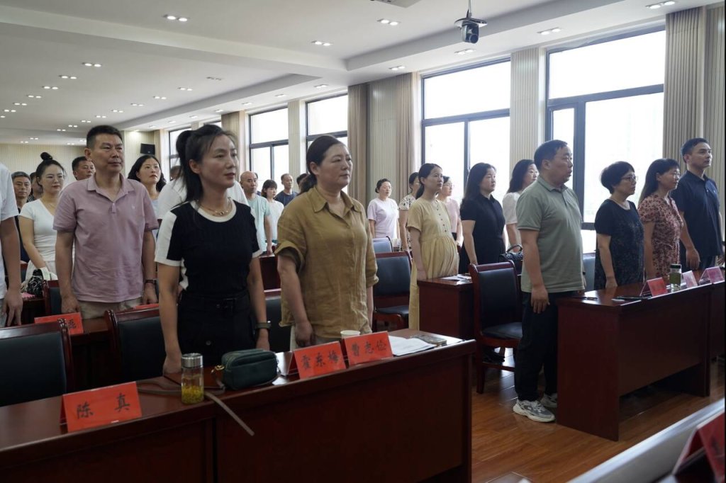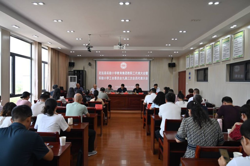 8月26日下午,定远县实验小学教育集团第九届三次教代会暨工会会员代表大会在东兴路校区三楼会议室隆重召开。大会代表应到121人,实到109人参加会议。此次会议旨在凝聚全体教职工的力量,总结经验,共商学校发展大计。会议由该集团工会主席杨维民同志主持。大会在庄严肃穆的国歌声中拉开序幕。