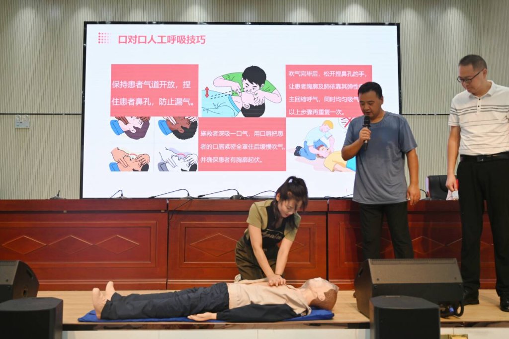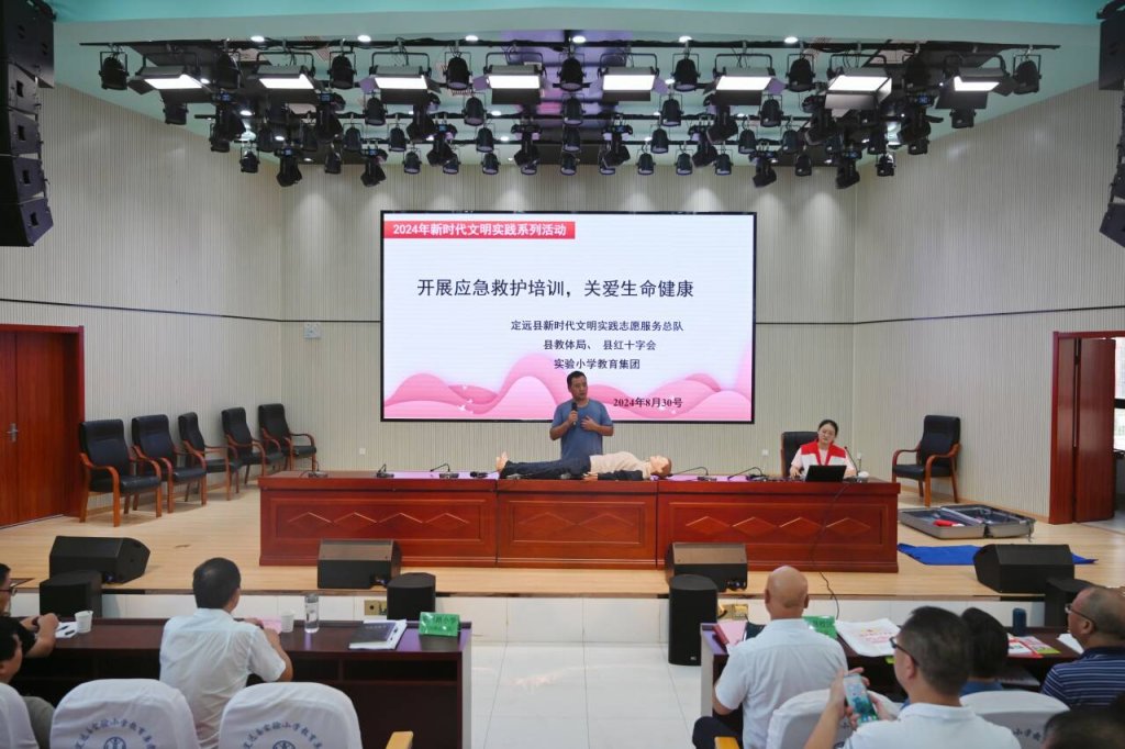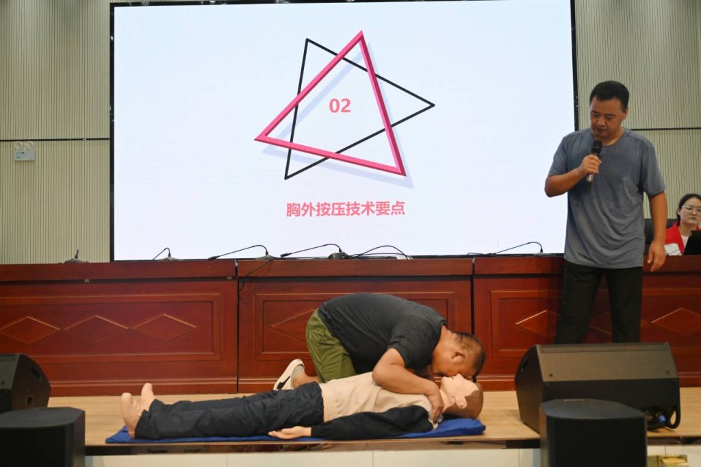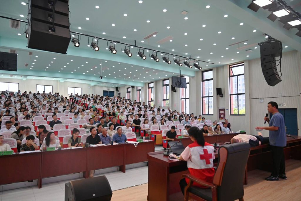 ~ 应急救护,是我们在面对突发事件时,保护自己和他人生命安全的关键技能。为营造健康、安全、稳定的校园环境,提高教师应对突发事件和意外伤害的应急救护技能,筑起校园安全防线,8月30日上午,定远县实验小学教育集团邀请红十字会会长谢超、救援队队长秦安周为全体教师进行应急救护知识技能培训。