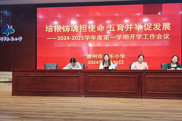 ~ 领航新学期,谋划新篇章。为明确新学期工作方向,助力学校高品质发展,确保2024年秋季学期开学工作平稳、有序、高效地展开。8月30日,滁州市永乐小学在“童乐谷”剧场召开了2024-2025学年度第一学期开学工作会议。