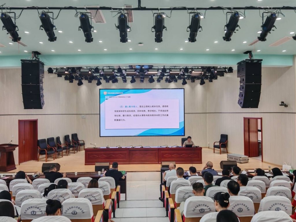8月30日,定远县实验小学教育集团2024学年第一学期开学工作会议暨师德师风专题培训活动在东兴路校区报告厅举行。集团党总支副书记、校长武文松主持会议,全体教职工参加会议。