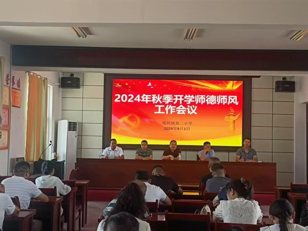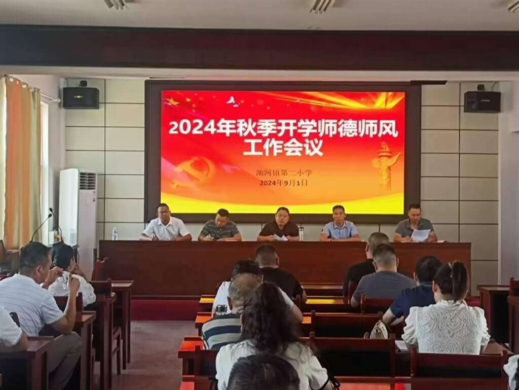 ~ 9月1日上午,定远县池河二小在学校会议室召开了2024年秋季师德师风建设专题会议,全体教师参加了会议。