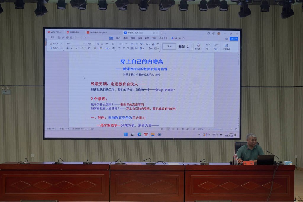 ~ 31日上午,安徽师范大学教育科学学院教授、博士、博士生导师孙德玉为大家带来题为《新时代教师的师德修养与教育情怀》的讲座。孙教授诙谐幽默的语言风格给在场的每位教师留下了深刻的印象,强调教师应强化红线意识,严守底线。下午,江苏省镇江市教师发展学院院长、江苏省特级教师,教授级中学高级教师徐明为全体教师呈现了一场题为《穿上自己的内增高——新课改指向的教师生长可能性》的精彩讲座。用生动幽默的方式深入浅出地向老师们阐述了新课改的内涵、本质、路径、挑战和切口,为老师们更好地践行新课标理念指明了方向。