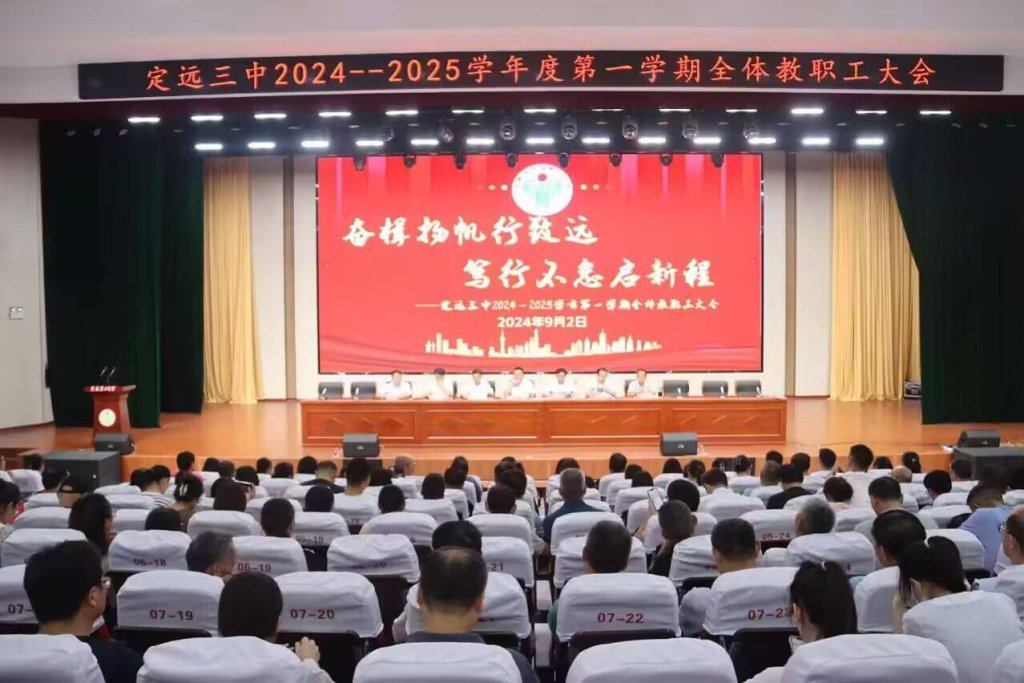 ~ 启航新学期,开启新征程。9月2日,定远三中在惟真讲堂报告厅召开了全体教职工大会,对新学期工作进行动员与部署,校领导班子成员和全体教职工参加了会议,会议由校党委副书记、副校长余忠亮主持。