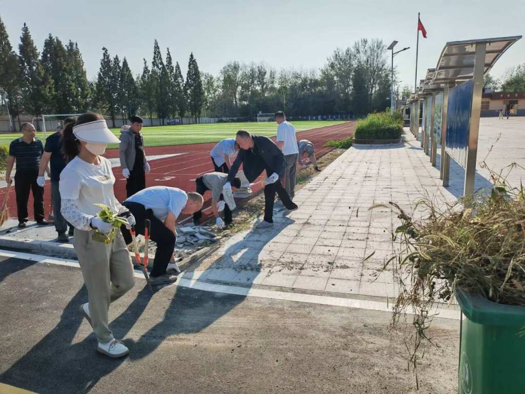 ~ 活动现场,支部全体党员带着卫生钳、扫把、垃圾桶等工具,全员上阵、撸起袖子、弯下身子,分工协作,清除杂草、捡拾垃圾、清理枯枝落叶,用实际行动展现了为民服务孺子牛、创新发展拓荒牛、艰苦奋斗老黄牛的“三牛”精神。经过一个小时的劳动,清理了运动场地周边绿化树下的杂草,捡拾了跑道上的枯枝落叶,清扫了场地周边卫生,优化了校园的环境,为师生课余树下小憩提供了干净整洁的环境保障。