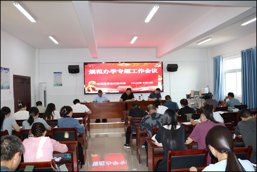 ~ 为进一步规范学校的办学行为和教师的教学行为,切实减轻学生的学业负担,保障学生身心健康成长,打造和谐温馨校园,9月3日,定远县青洛初中在新综合楼三楼会议室召开规范办学专题工作会议,会议由学校党支部书记、校长单国选主持,全体教师参会。