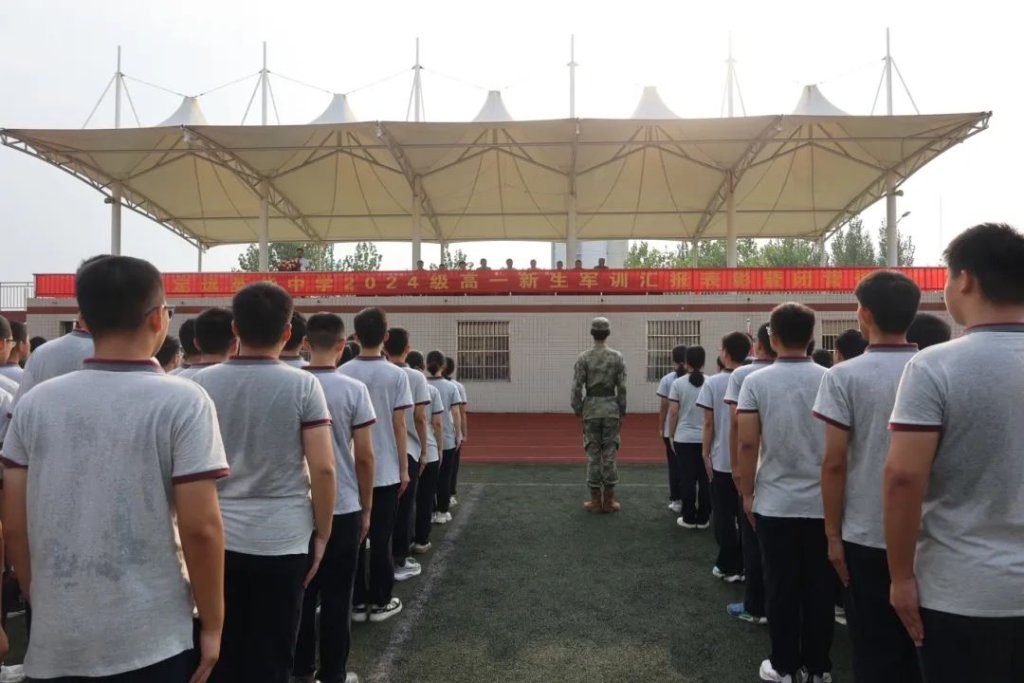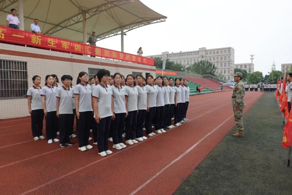 ~ 淬青春之火,斗志昂扬。高一级部主任张祥总结了军训期间同学们的表现:一是对同学们坚持上完高中第一课的表扬与祝贺;二是对班主任全程陪伴、全程关心的感谢;三是对全体教官严格训练严格要求的点赞;四是希望每一位高一新生,将军训中学到的纪律性、团队协作精神和勇于挑战自我的勇气,带入到未来的学习和生活中去。