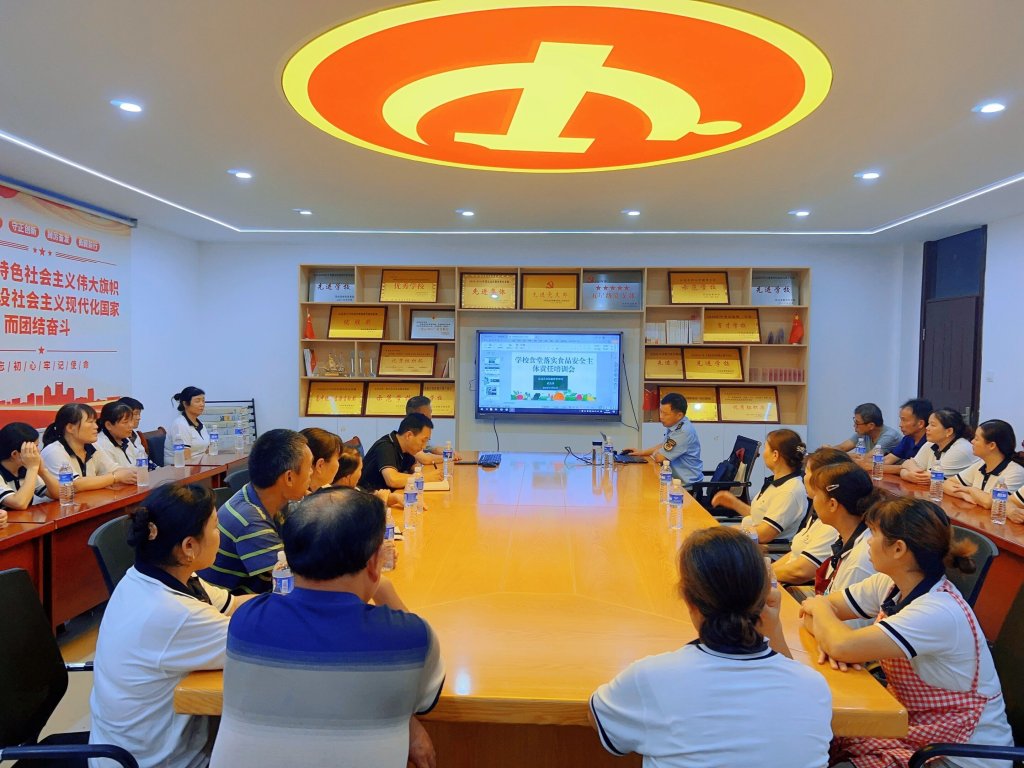 ~ 9月5日晚,定远县工商所姬晓三书记,技术监督局武忠洋股长走进育才学校,开展校园食品安全培训,育才学校董事长孔飞及全体食堂员工参加培训。