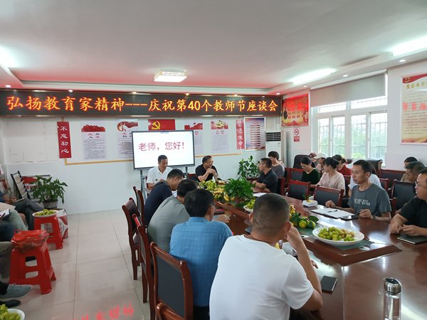 9月6日下午,在第40个教师节来临之际,定远县斋朗学校以“大力弘扬教育家精神,加快建设教育强国”为主题,在会议室召开庆祝第40个教师节座谈会。校党支部书记、校长室成员、行政人员以及全体教师共同参加。