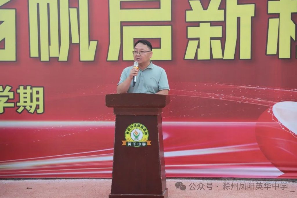 ~ 凤阳英华中学执行校长杜广卫作新学期致辞。他从“发展自我、成就自我、奉献自我”三个方面展开,激励英华的学子,不仅要在学习中追求卓越,努力提升自己,勇敢追逐梦想,不断发展和成就自我,同时还要积极承担社会责任,为国家和社会的进步贡献力量,内心要充满正气、大气、和气,做一名有气度、有深度、有风度、有温度的人。