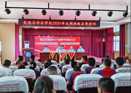 ~ 金秋九月,杏坛飘香。为学习贯彻党的二十届三中全会精神,加强新时代高素质教师队伍建设,9月9日上午,定远县特教学校在多功能厅隆重举行第40个教师节庆祝表彰大会。大会以“大力弘扬教育家精神,加快建设教育强国”为主题,校支部书记谢庆贵和全体师生参加会议。