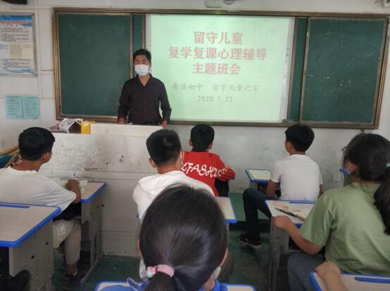 ~ 在青洛初中校长室和校团委的精心组织下,学校留守儿童功能室管理员以调查问卷的形式对留守儿童们出现的心理健康问题进行摸排、分类、汇总。学校通过发放《致留守儿童家长一封信》,各班级组织召开留守儿童复学复课心理辅导主题班会,心语小屋管理员分类给留守儿童上心理辅导课以及结对帮扶老师一对一的对留守儿童进行心理疏导等多形式多举措扎实做好复学复课后留守儿童的心理辅导和心理教育,使留守儿童们学会了自我心理调节、心理适应、学会克服疫情阴霾笼罩的情绪波动、学会防溺水等安全方面的自我防控和管理。