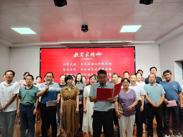 ~ 在活动的高潮部分,全体师生齐声诵读“教育家精神”,这不仅是对教育传统的传承,更是对未来教育梦想的共同承诺。学校还特别安排了对退休教师的慰问环节,感谢他多年来对教育事业的无私奉献。