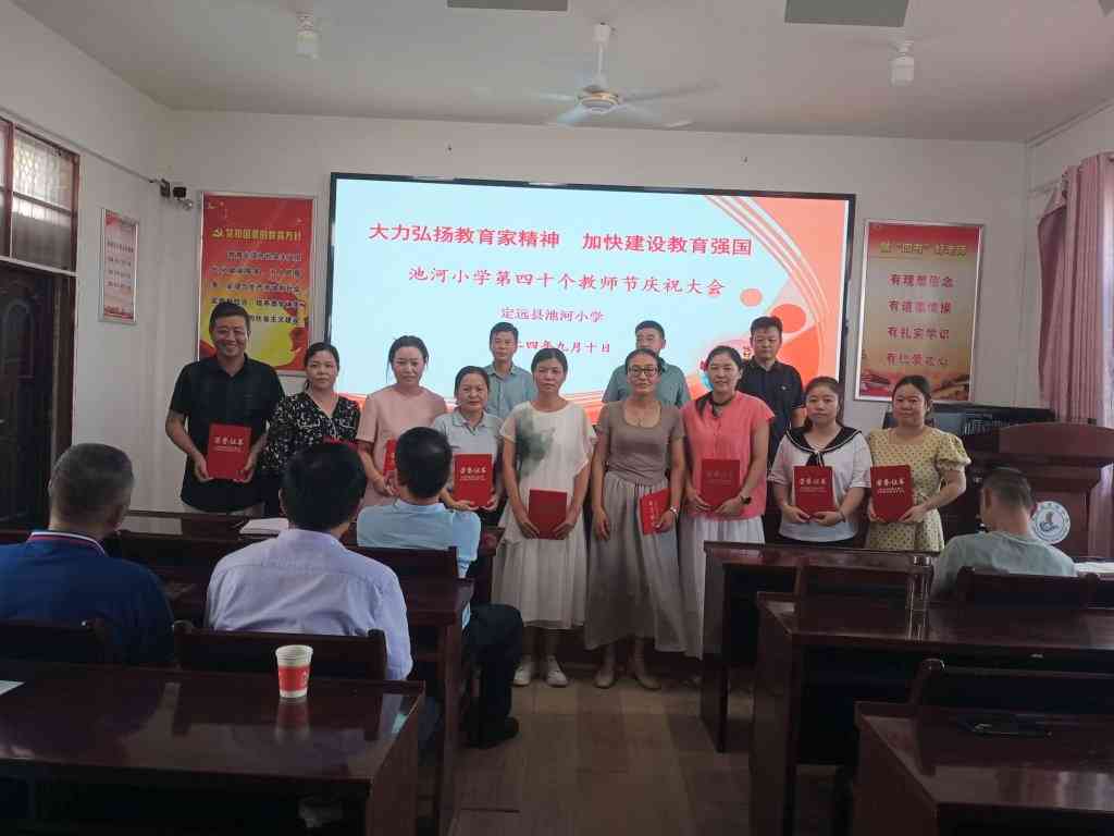~ 为庆祝第四十个教师节,大力弘扬教育家精神,激励全校教师积极投身教育强国建设,9月10日下午,定远县池河小学举行了第40个教师节表彰大会,进一步加强教师的职业幸福感和团队的凝聚力。