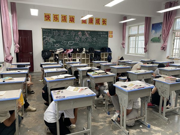 ~ 为强化全体师生的安全意识,提高安全防范能力,9月11日,定远县天河初中安全办冒雨开展应急演练活动。